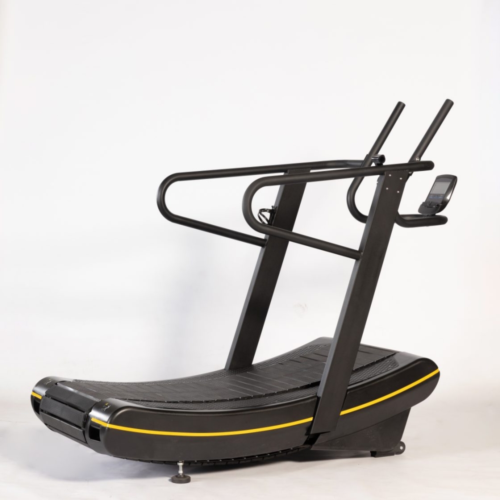(4) वक्र ट्रेडमिल- 8 किमी धावणे आणि रिअल रोड रेझिस्टन्स रनिंग 50% पेक्षा जास्त HYROX बनवते आणि सहनशक्तीचा पाया तयार करते. पारंपारिक मोटार चालवलेल्या ट्रेडमिल्सच्या तुलनेत, वक्र ट्रेडमिल्स HYROX प्रशिक्षणाला अधिक अनुकूल आहेत: स्वयं-शक्ती, वास्तविक रस्त्यावरील प्रतिकाराचे अनुकरण करणे आणि निष्क्रिय हालचालीशिवाय चालणारी अर्थव्यवस्था आणि पायांची सहनशक्ती सुधारणे.